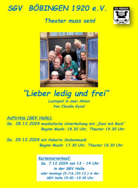 Am 28.12. sorgt mit zwoi Bock ab 18:30 Uhr für musikalische Stimmung, bevor die Theaterspieler ab 19:30 Uhr ihr Erprobtes zum Besten geben.